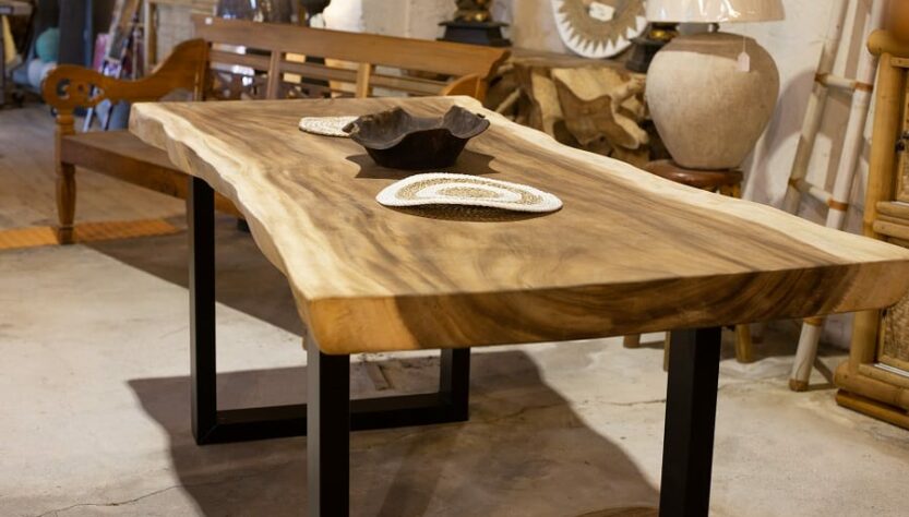 Les tables en suar se déclinent dans une grande diversité de styles. Certaines conservent leur forme brute, mettant en avant les contours naturels du tronc, tandis que d’autres adoptent des lignes plus épurées, parfaites pour les intérieurs modernes.